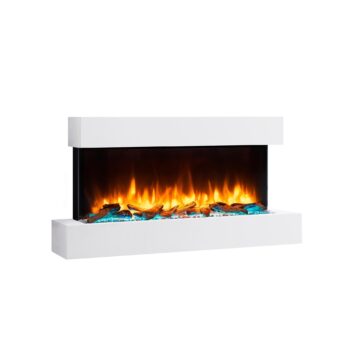 Eπιδαπέδιο ηλεκτρικό τζάκι με κομψή επένδυση λευκού και μαύρου χρώματος, και γυάλινο ράφι, σχεδιασμένο ειδικά για δωμάτια με περιορισμένο ελεύθερο χώρο. Παρέχει θέρμανση ενώ η εικονική φλόγα, τεχνολογίας Optiflame®, και τα ρεαλιστικά κούτσουρα με εσωτερικό φωτισμό που τρεμοπαίζει, δημιουργούν μια ζεστή ατμόσφαιρα ανάλογη με αυτή ενός τυπικού τζακιού. Η λειτουργία θέρμανσης ρυθμίζεται μέσω αναλογικού θερμοστάτη.